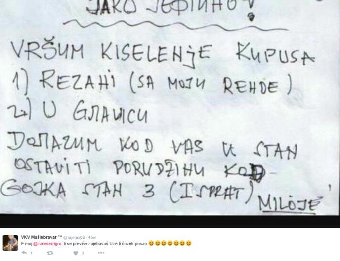 NaslovnaVestiSrbijaHIT FOTO NA TVITERU: Vršim kiseljenje kupusa sa moji rende! Dolazim kod vas u stan!Pravi zimski biznisHIT FOTO NA TVITERU: Vršim kiseljenje kupusa sa moji rende! Dolazim kod vas u stan!Pet, 06.01.2017. 15:39h → Ned, 01.10.2017. 0:00h 11Foto: Twitter Printscreen Vršim kiseljenje kupusa sa moji rende... u glavicu... Dolazim kod vas u stan... (EPK/Foto: Twitter printscreen)