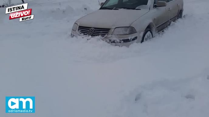 Smetovi su visine od metar i po, temperatura minus 15 stepeni. Meštani pokušavaju kolima da probiju put ka kući.
