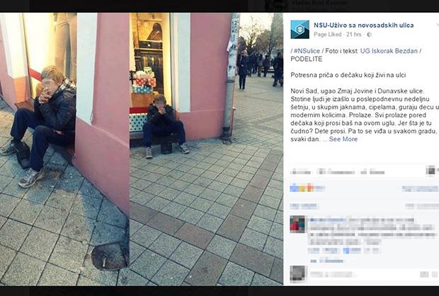 Novi Sad, ugao Zmaj Jovine i Dunavske ulice. Stotine ljudi je izašlo u poslepodnevnu nedeljnu šetnju, u skupim jaknama, cipelama, guraju decu u modernim kolicima. Prolaze. Svi prolaze pored dečaka koji prosi baš na ovom uglu...