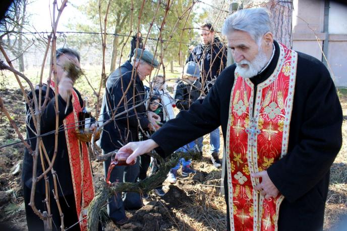 Ceremoniju sečenja slavskog kolača i orezivanja vodili su svestenici mesnih crkava, a lepo vreme omogućilo je da u vinograde dođu i najstariji i najmlađi, dede i unuci.