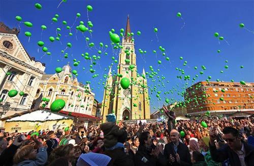 NOVI SAD - Puštanjem stotina zalenih balona za natpisom "I ja se borim" i znakom NURDOR-a danas je tačno u 13 sati u centru Novog Sada završen humanitarni skup kojim je obeležen Međunarodni dan dece obolele od raka.