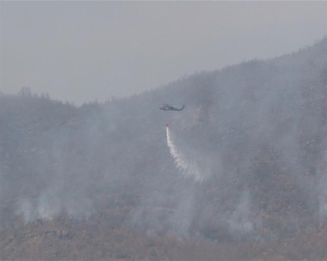 ZVEČAN - Vojni helikopteri Kfora učestvovali su danas u gašenju požara koji je sinoć zahvatio brdo Sokolica kod Zvečana na severu Kosova.