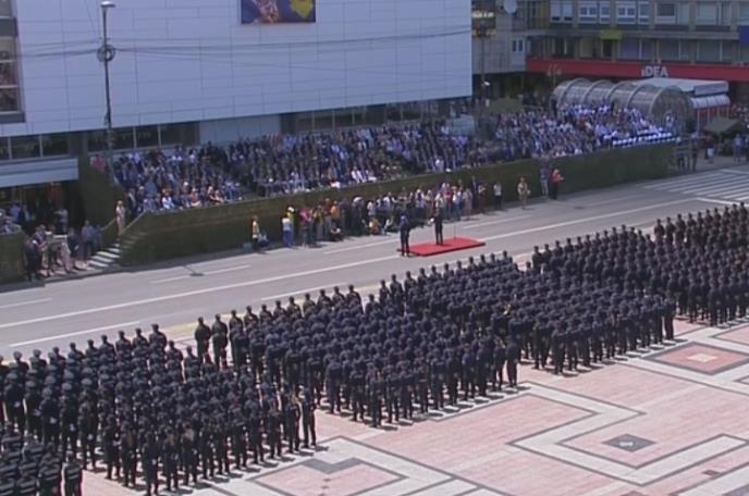 Na početku svečanosti pukovnik policije Dragan Vasiljević raportirao je ministru unutrašnjih poslova Nebojši Stefanoviću, koji je potom pozdravio pripadnike MUP-a.