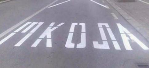 Primer 1 - horizontalna signalizacija u glavnoj ulici, od mesta gde je nekada bio semafor do opštine. Nemoguće je preći ulicu, a da ne pregazite linije.