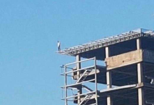 NOVI SAD - Na ivici konstrukcije jedne novosadske zgrade od jutros stoji nepoznati muškarac?!