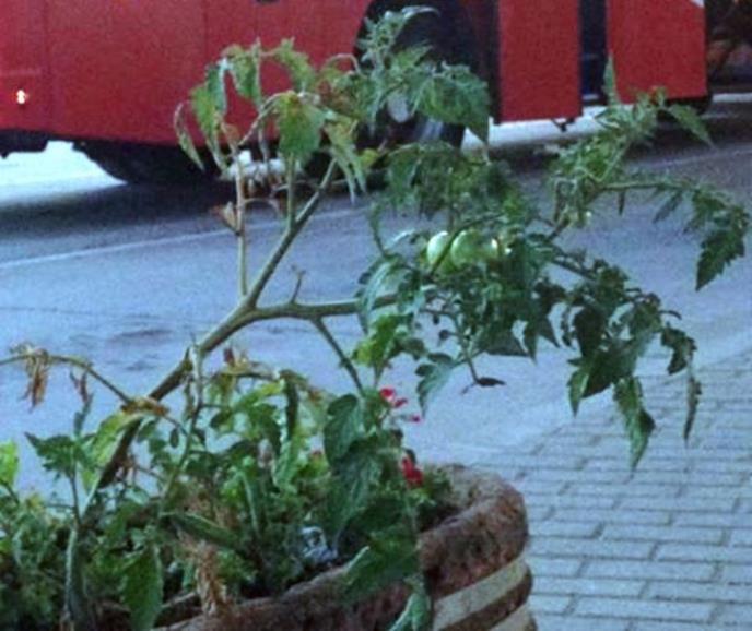 U jednoj od žardinjera na GAS-u u Leskovcu pored cveća nikao je paradaj, a putnici nestrpljivo čekaju da uzreli.