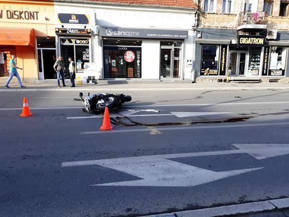 Vozač automobila je udario u vozača motora koji je sa vidljivim povredama prebačen u Urgentni centar Opšte bolnice Leskovac.