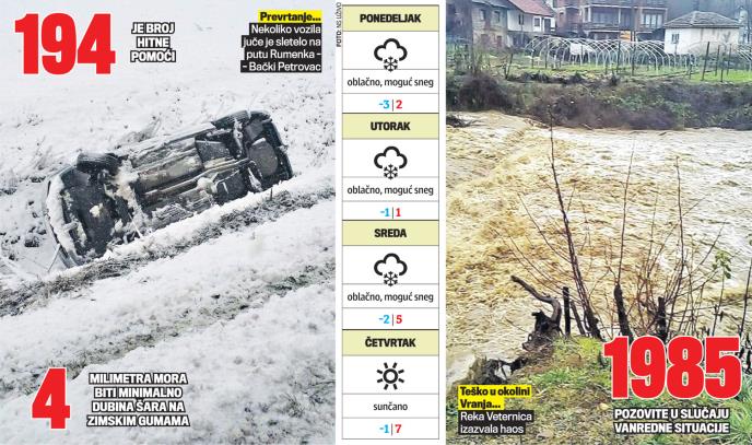 Prvi sneg pao je juče u većem delu Srbije, a najveće probleme stvorio je u Vojvodini, gde su automobili sletali s puta!