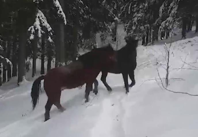 Naime, dva predivna konja drvoseče Dragana Kneževića iskoristila su zimsku idilu na padini i uživala u igri, a ova slika je sve podsetila na lepotu netaknute prirode kojom Srbija raspolaže.
