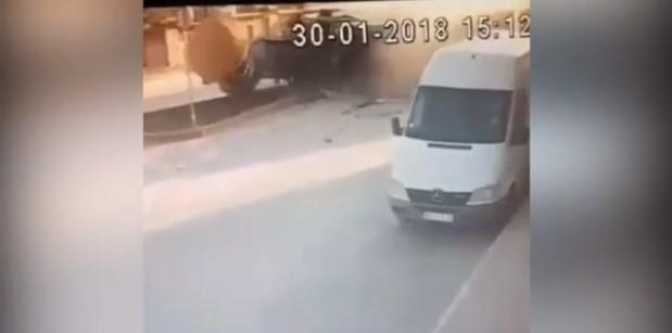 Pravi karambol u kojem je kamion najpre zakačio vozilo koje mu je dolazilo u susret, pa potom pokupio nekoliko saobraćajnih znakova, kontejner i oglasni stub, snimile su policijske nadzorne kamere.