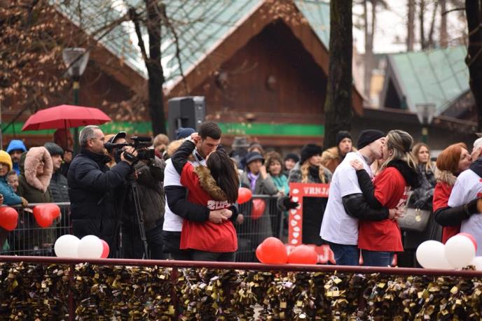 Pred velikim brojem posmatrača i hladnom vremenu, u Vrnjačkoj Banji je danas po jubilarni deseti put održano takmičenje u najdužem poljupcu.