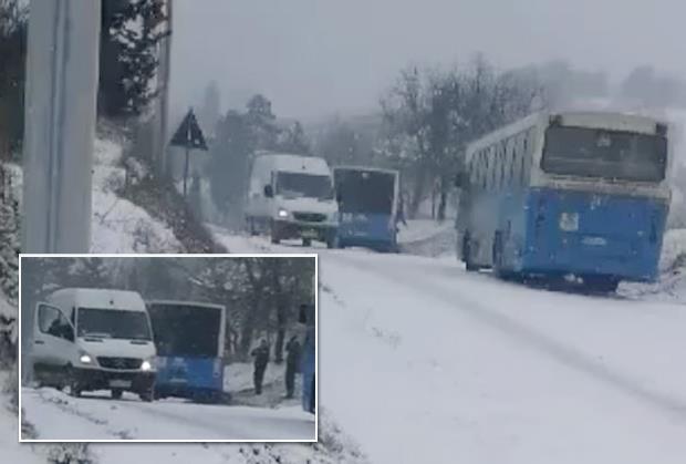 Očevici dalje dodaju da je put klizav i blokiran, kao i da putarske službe nisu posule so na toj deonici.