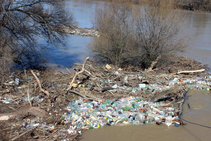 U vrbacima kod visećeg mosta u Bagrdanu, koji su pod vodom, a Morava mutna i nabujala, otpada i plastične ambalaže je na tone jer ih matica reke nije odnela dalje do Dunava.