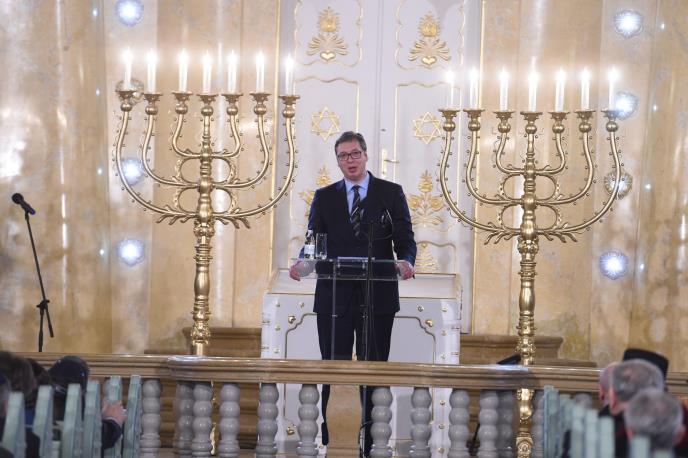 "Sinagoga, druga po veličini u Evropi nakon budimpeštanske, zasijala je kako zaslužuje. Na obnovi smo radili zajedno i naporima i sredstvima i zato posebno hvala Orbanu bez čije podrške i učešća ova signagoga ne bi ovako sijala", rekao je Vučić.