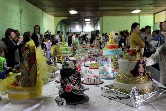 Na velikom prostoru, u Sportskoj hali JASA, gde su bile izložene torete, bila je velika gužva, preko hiljadu posetilaca, uglavnom žena sa fotoaparatima i telefonima kojima su slikale torte.