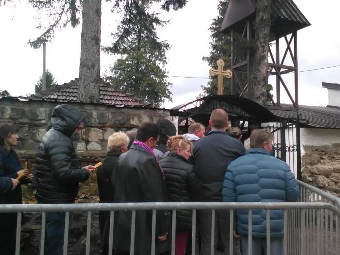 Svaki vernik poljubi srebrni molitveni krst u svešteničkoj ruci, prekrsti se okrećući se s leva na desno.U čelu nevelikog dvorišta je ikona Raspeća Hristovog gde narod ostavlja darove.Ljudi donose i ostavljaju razne stvari. Jedni za ozdravljenje svojih najbližnjih, a drugi za zdravlje ukućana. Vera Antić je u crkvu došla sa unucima .