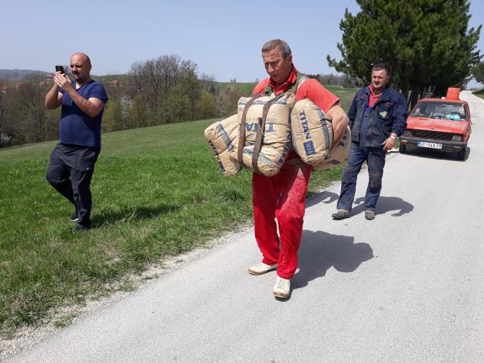 Deonicu od 100 metara, sa dva džaka cementa u rukama pretrčao je za 32 sekunde, sa četiri džaka cementa nije stigao do cilja, jer su se na polovini staze, džakovi na njegovim leđima pocepali od pritiska!