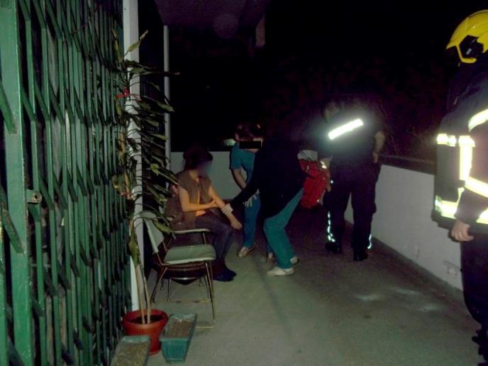 Spasioci su razvalili katanac na zaštitinoj ogradi lokala koji se nalazi u međuspratu ove višespratnice i omogućili medicinskoj ekipi da zbrinu ženu.