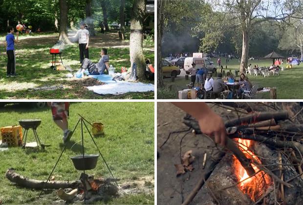 U Zvezdarskoj šumi roštilji su uveliko raspaljeni, a za doručak se spremaju ćevapi i pileće belo.