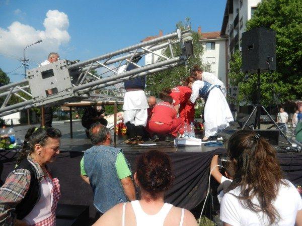 Portal je naveo da je prvu pomoć povredjenima pružila doktorka beogradske Hitne pomoći Nada Macura, koja je bila gost festivala.
