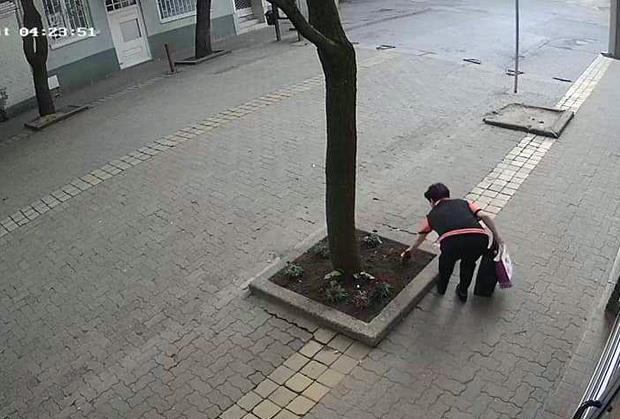 "Sigurnosne kamere naših suseda, “Zoom optike”, zabeležile su u subotu bizarnu scenu. Na snimku se vidi starija gospođ. U cik zore, oko pola pet, zastala je ispred naših lokala. Počupala je cveće koje smo ovih dana posadili i otišla. Njoj je definitivno tuđe slađe", ogorčena je Mirjana.