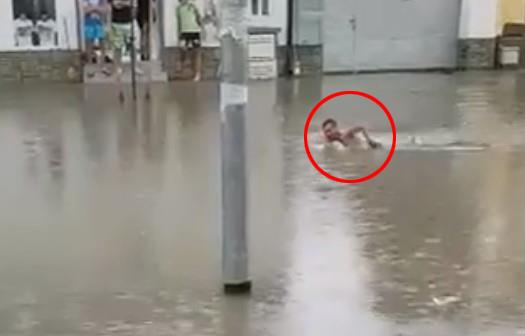 Mnogima nije do zabave, posebno ljudima kojima je voda probila u kuće. U svakom slučaju, mladić se odlično zabavio.