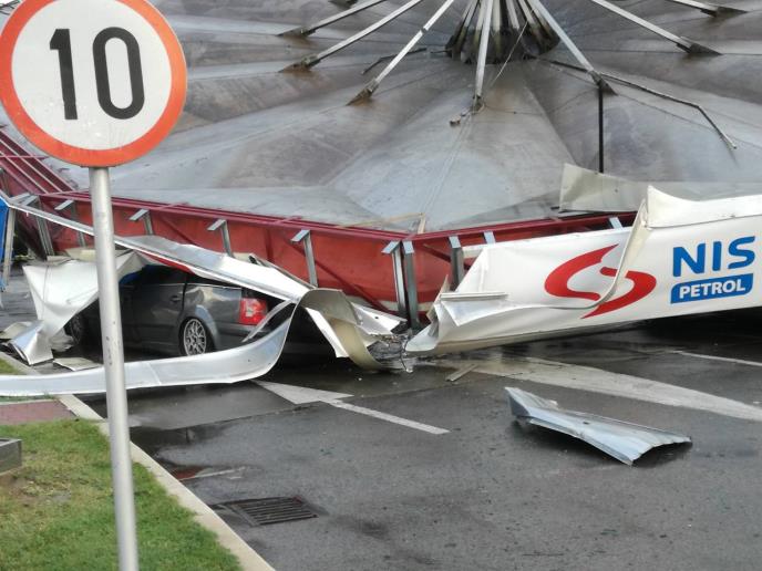 "Usled jakog nevremena koje je zahvatilo Novi Sad, danas oko 18.15 časova došlo je do pada nadstrešnice na benzinskoj stanici "Mala pečurka" u neposrednoj blizini poslovnog centra NIS-a.