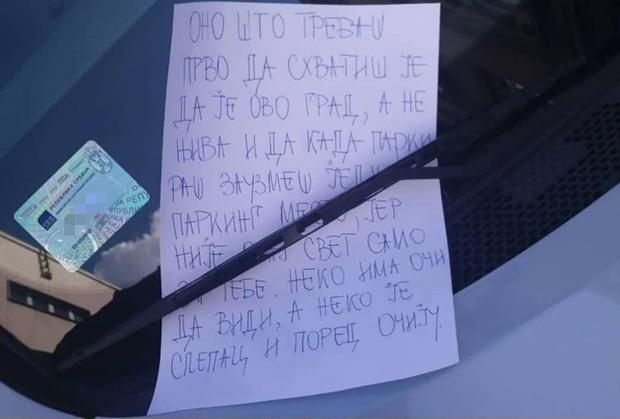 Poruka novosadskog kolege vozača koja je osvanula na šoferci jednog automobila, bahato parkiranog na čak dva parking mesta, izazvala je lavinu komentara na Instagramu.