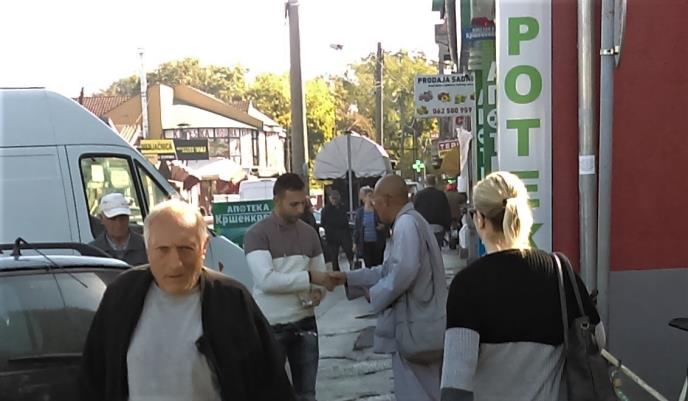 Posle Beograda, ljudi u budističkim odorama pojavili su se od jutros i u Nišu. Sklope ruke, poklone se građanima koje sretnu na ulici i prodaju za 200 dinara narukvice. Neki koji su bili "žrtve" monaha kažu da im oni odmah traže ruku da stave narukvicu, a nekad posle svog uobičajnog pozdrava, pitaju da li mušterija želi da kupi ovaj navodno sveti nakit.