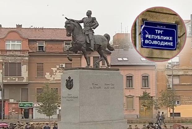 TEŠKA PROVOKACIJA NA SAM DAN PRISAJEDINJENJA: Tabla sa imenom Trga republike u Novom Sadu prelepljena sa Trg republike Vojvodine?! (FOTO)