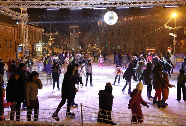 Klizalište je površine 400 metara kvadratnih i postavljeno je na centralnom gradskom trgu.