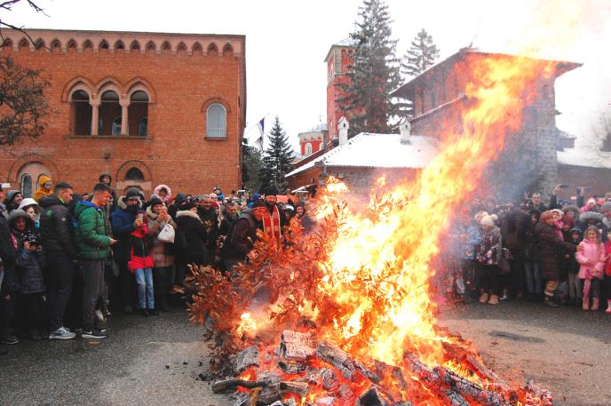 PALJENJE BADNJAKA U MANASTIRU GDE JE KRUNISANO 7 SRPSKIH KRALJEVA: Skupile se stotine vernika, a evo kako je sve izgledalo (FOTO)
