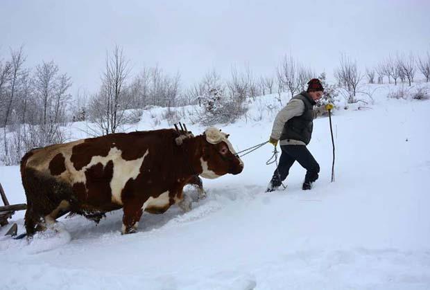 - Sneg ume da napada baš dobro, bude smetova preko dva metra, i tada se do mesta gde ima stogova sena jedino može doći volovima. Tako meštani sela Bogoštica upregnu volove u drvene sanke, stare više od pola veka, i odlaze po seno u zavejana brda. Njima to ne pada teško, a znaju i da je to jedini način da dovuku neophodnu hranu stoci u zimskim danima, iako je potrebno da prevale i po nekoliko kilometara po hladnoći. Navikli su na takav način života, kaže on.