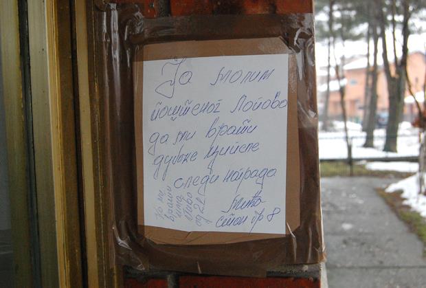 "Ja molim poštenog lopova da mi vrati duboke cipele, sledi nagrada", piše u poruci ispisanoj rukom i oblepljenoj selotejp trakom, okačenoj na ulazu u zgradu koja se ne zaključava.