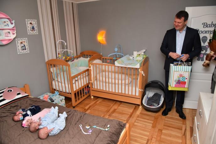 Predsednik Pokrajinske vlade Igor Mirović posetio je danas u Subotici porodicu Krstić koja je dobila četvorke putem Programa vantelesne oplodnje, koji je sufinansirala Pokrajinska vlada.
