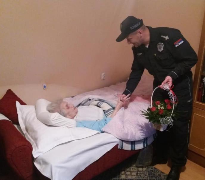 LEP GEST POLICIJE U VRBASU: Čestitali 8. mart najstarijoj Vrbašanki i odneli joj poklon