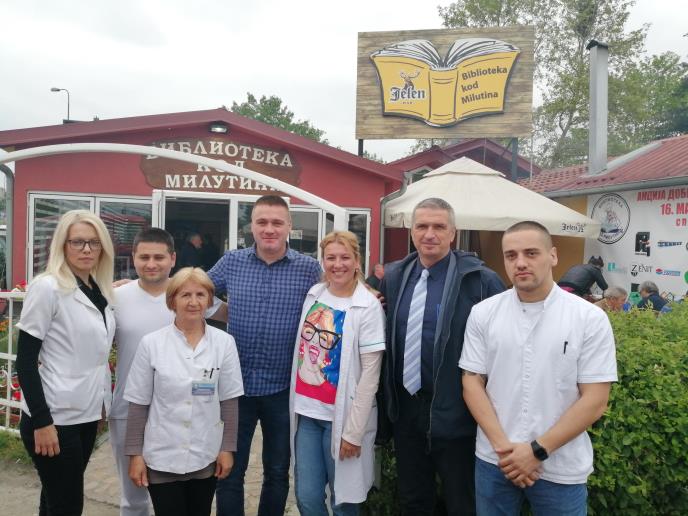 Petu godinu zaredom organizovana je jedna od najvećih akcija davanja krvi u Srbiji, tradicionalno u kultnom kragujevačkom restoranu "Biblioteka kod Milutina", u saradnji sa Kliničkim centrom Kragujevac. Više od 150 građana Kragujevca i iz cele Srbije, ali i sa drugih kontinenata, dalo je krv koja je dovoljna da namiri červorodnevne potrebe pacijenata Kliničkog centra koji pokriva teritoriju od dva miliona ljudi.
