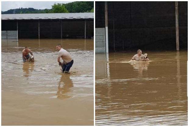 Naime, članovi Udruženja "Ljubitelji prirode" nisu prezali pred bujicom koja je nosila sve pred sobom, već su spasavali stoku iz hladne vode.