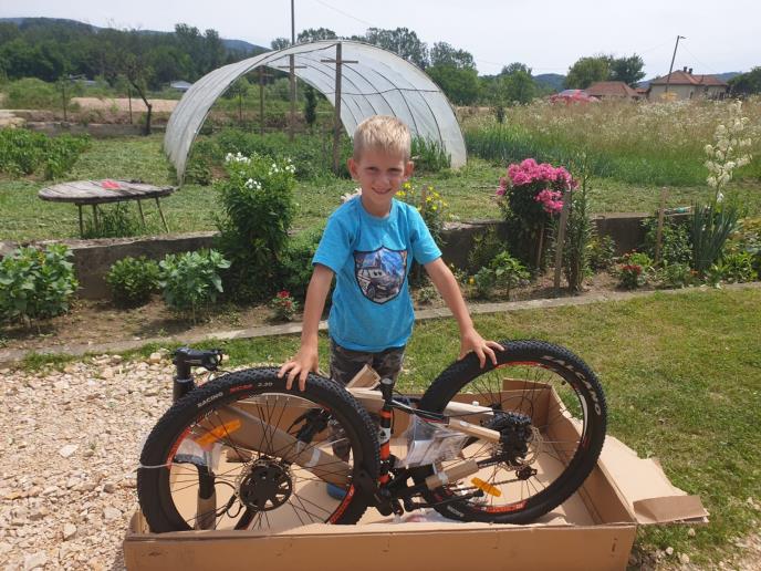 Mali Rajko Milivančević iz naselja Krstač u Lučanima, ne skida osmeh sa lica jer je dobio novi bicikl koji mu je predsednik Srbije Aleksandar Vučić obećao!