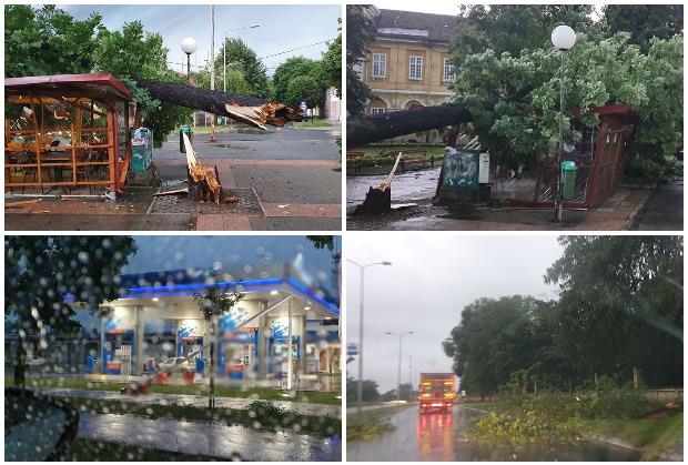 U Novom Sadu vetar je lomio drveće, u Beogradu je padao jak pljusak, skoro cela Loznica ostala je bez struje, a u Šapcu se srušio deo fasade zgrade, ali nema povređenih.