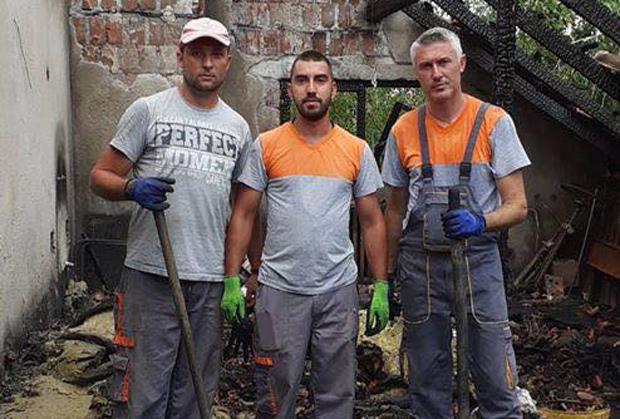 Dan posle požara u ulici Jovana Skerlića u Jagodini došli su prijatelji i kolege porodice Popović kojoj je grom udario u kuću, da pomognu oko čišćenja potkrovlja koje je bilo puno polomljenih crepova i pregorelih letvi od požara.
