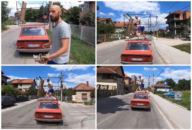 STEFAN IZ JAGODINE RADIO ZGIBOVE NA KROVU AUTA U POKRETU: Sada je smislio nešto novo od čega će vam zastati dah (FOTO, VIDEO)