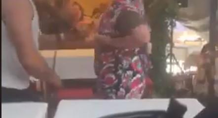 Muzika ju je, kako se vidi na snimku, toliko "ponela" da je u sledećoj sekundi učinila nešto veoma degutantno - doslovno je razdrljila haljinu iz koje je izvadila gole grudi i pokazala ih violinisti. Sekund potom usledila je još gadnija scena u kojoj se vidi kako joj on opipava grudi...
