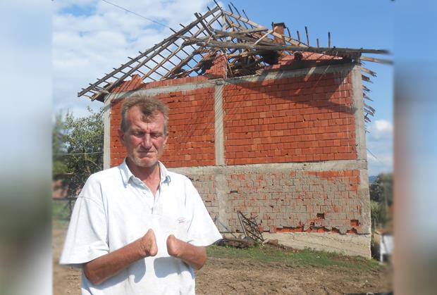 -Olujni vetar odneo je crep sa nove kuće, napravio ogromne štete, porušio štalu. Sve što sam znojem i snagom stekao nestalo je za pet minuta, kroz suze nam je jedva rekao Slobodan Bogićević iz Suvog Dola moleći za pomoć, jer njegove junačke ruke posustaju i nema više snage kao nekad da ponovo teškim poljoprivrednim radom kući svoj dom.