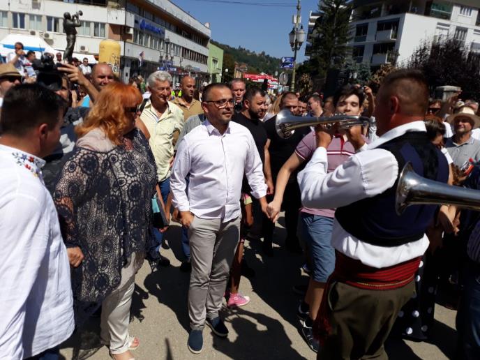 Ministar poljoprivrede, vodoprivrede i šumarstva Branislav Nedimović na otvaranju Sabora trubača u Guči je zaigrao kolo.