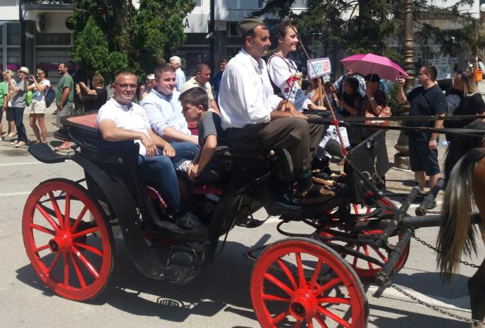 Danasse Branislav Nedimović provozao svečanim čezama iz kojih je pozdravljao i bodrio saboraše.