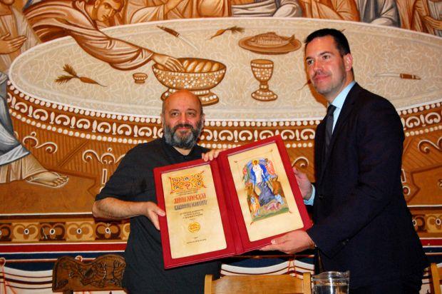Čast da uruči Žičku hrisovulju pesniku Vladmiru Jagličiću pripala je gradonačelniku Kraljeva dr Predragu Terziću.
