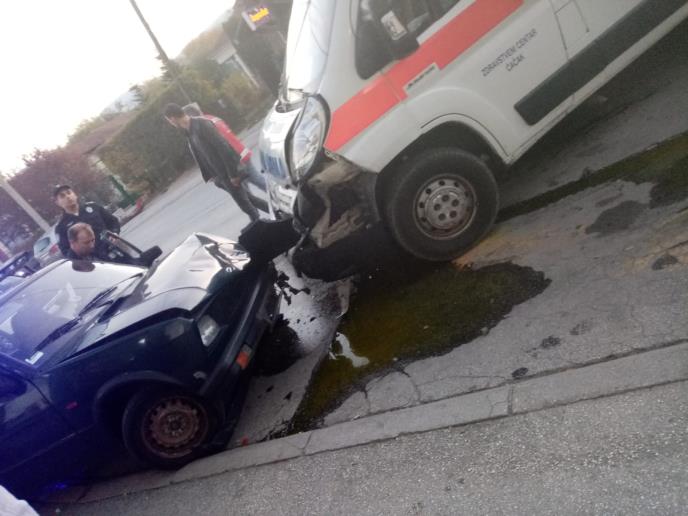 ČAČAK- U Ulici Dragiše Mišovića došlo je do saobraćajne nezgode kada se vozilo Hitne pomoći koje se kretalo iz centra grada sudarilo sa taksijem.