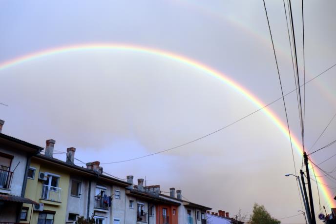 Posle kratkotrajne kiše, oko 16.20 sati, nad Jagodinom se, u svojim raskosnim, duginom bojama, pojavila duga.