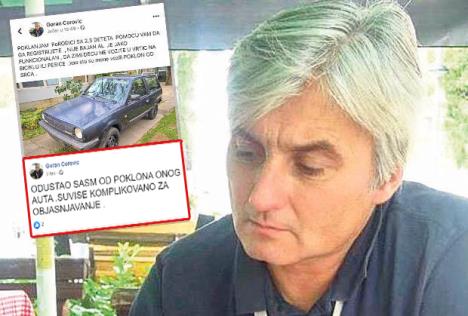 - Odustao sam od poklona onog auta. Suviše komplikovano za objašnjavanje - napisao je Goran.